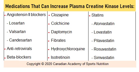 2) If you are taking any of the medications listed in the chart and your plasma CK levels are higher than normal, you need to consult the prescribing physician.