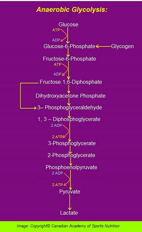 The end product of this energy system is lactic acid. As lactic acid accumulates, the production of ATP via anaerobic glycolysis starts declining. This system provides ATP for up to 2 – 3 minutes. If exercise continues beyond 2 – 3 minutes, either the intensity of exercise should be decreased or the body would switch to aerobic systems to use oxygen to produce ATP.